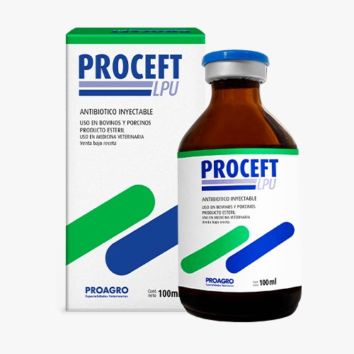 Antibiótico inyectable de amplio espectro, listo para usar. El Proceft es una cefalosporina de tercera generación con acción frente a bacterias gram (+) y gram (-), incluyendo cepas de estafilococos penicilinorresistentes.